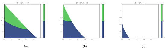 Hence, we have , as both the numerator and denominator of Equation (A63) are positive. □