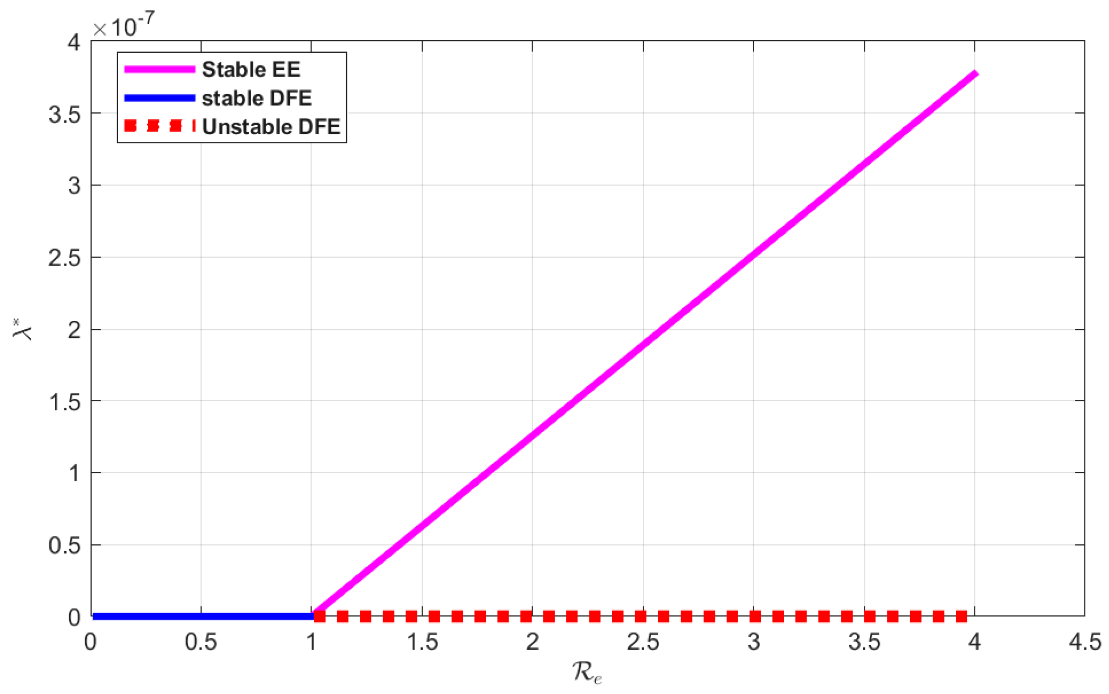 Figure 2 illustrates the system’s behavior as the effective reproduction number