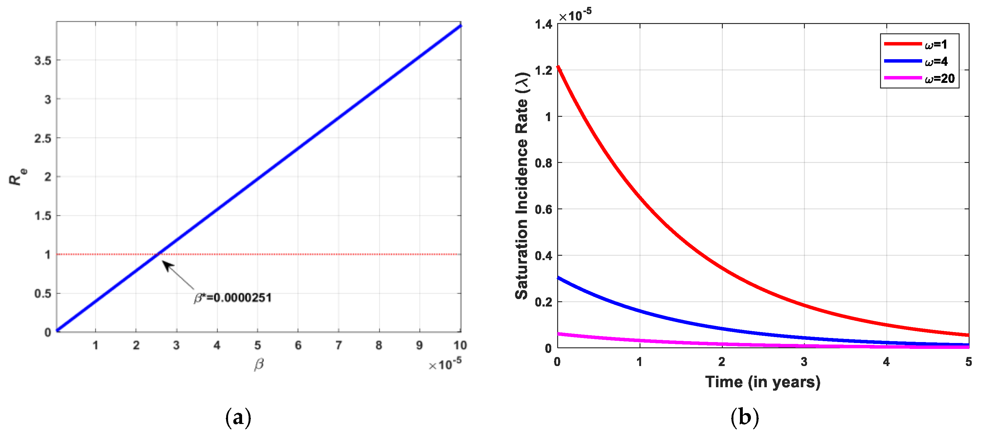 c) associated with high levels of infected individuals. To capture the inhibitory effects arising from behavioral changes or the density of infected individuals, neither the mass action incidence nor the standard incidence function is sufficient. Several studies have shown that the saturated incidence rate provides a more realistic representation of population behavior in large populations, where an increase in disease prevalence induces intrinsic behavioral changes that lead to a decrease in the incidence rate [