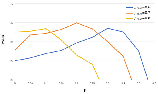 The PSNR performance of the proposed DMET on the CBSD68 dataset corrupted with speckle noise ( = 0.04) under different and .