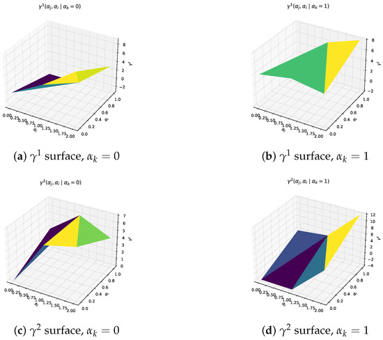 Table 1. Agents and feasible strategy sets in the worked example. Symbols denote realized action levels in . - The two utility functions and in capture dual epidemic objectives: corresponds to immediate infection suppression (short-term), and models long-term resilience building within the affected population. All values of are arbitrarily chosen to represent plausible yet synthetic intervention outcomes under different combinations of actions. Related intervention effectiveness values are assigned as follows. Let , , , , , , , , , , , , , , , , , , , , , and . Related conditions also can be described in Figure 1.