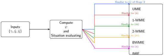 for each and for each . Thus, the MOBCY condition is verified. Analogous arguments apply for the 1-WMIE, the 2-WMIE, and the UMIE, by setting relevant weights to 1 accordingly. □