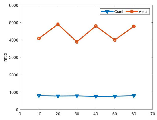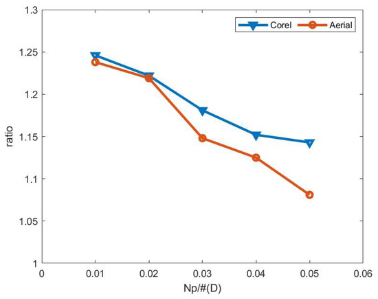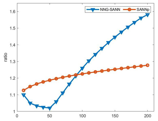 The ratio on the Aerial dataset with NNG-SANN and SANNp.