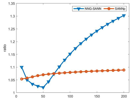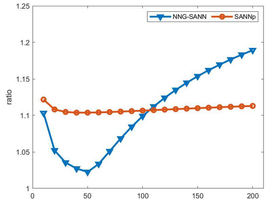 The ratio on the Sift dataset with NNG-SANN and SANNp.