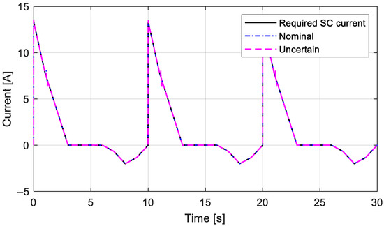 Supercapacitor’s current tracking performance, , with parameter uncertainties.