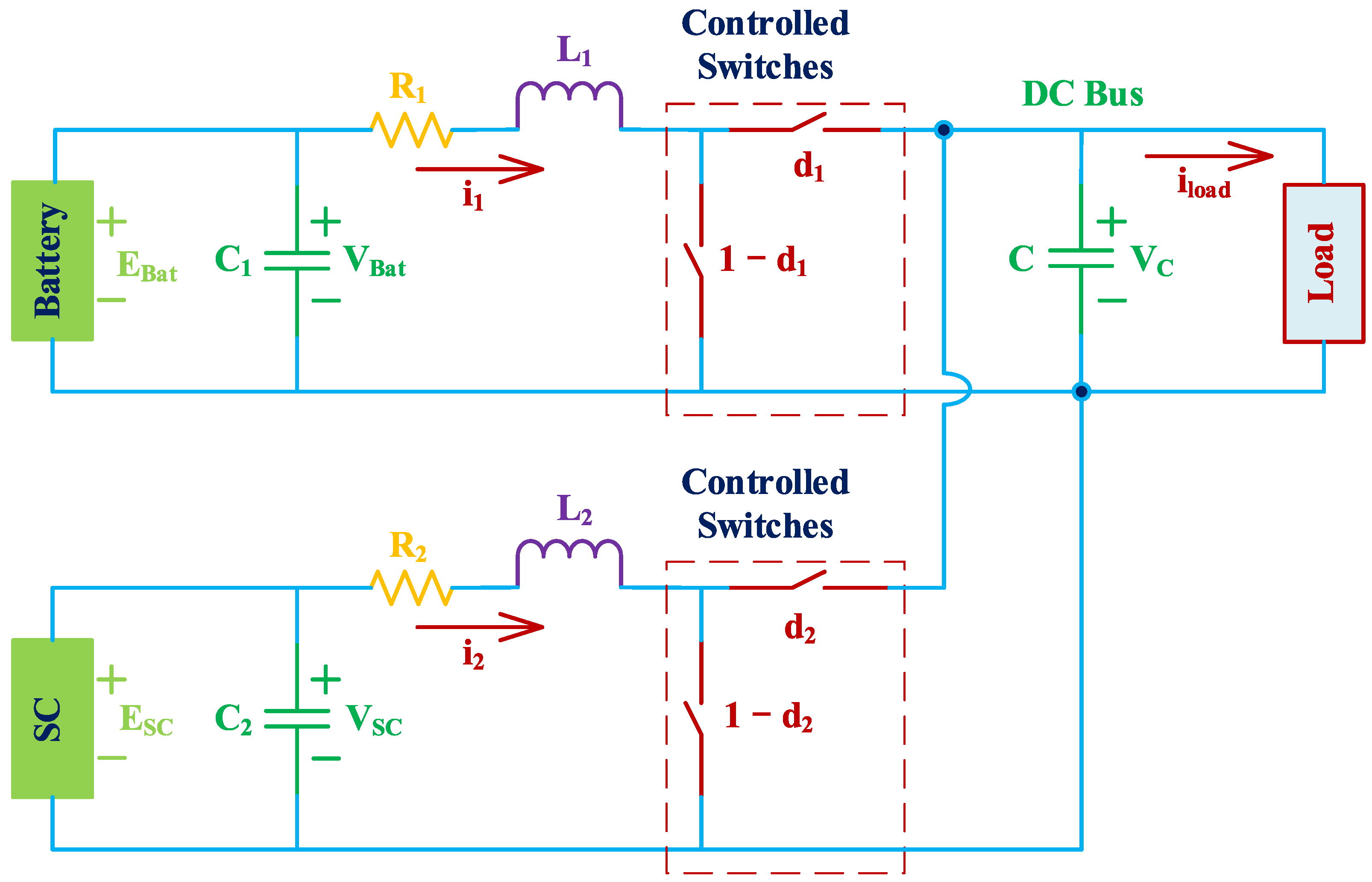 - Zhang, X.; Wang, Y.; Yuan, X.; Shen, Y.; Lu, Z. Adaptive dynamic surface control with disturbance observers for battery/supercapacitor-based hybrid energy sources in electric vehicles. IEEE Trans. Transp. Electrif. 2023, 9, 5165–5181. [Google Scholar] [CrossRef]