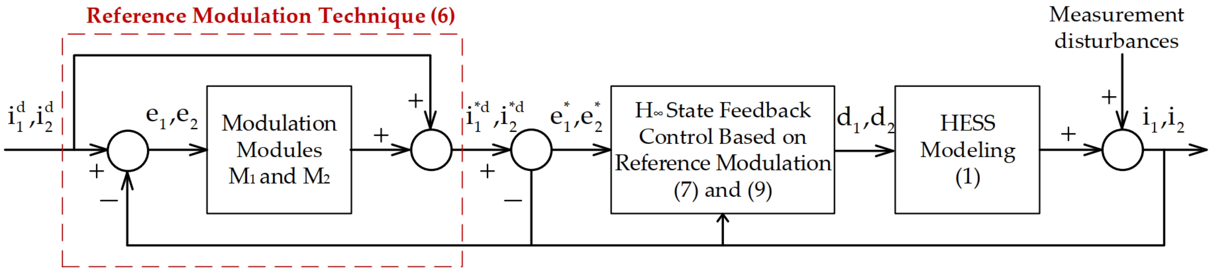 4.2. H∞ State Feedback Control Based on the Reference Modulation Technique