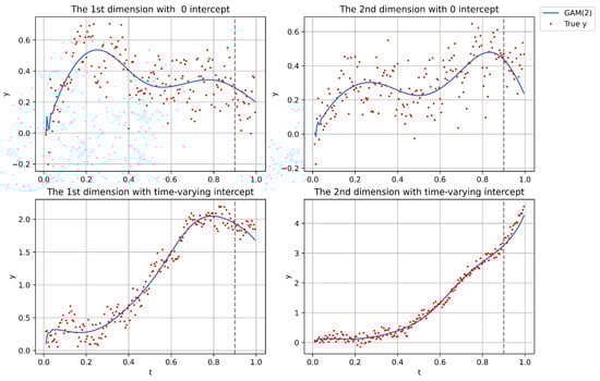 Two examples of time-varying series data by using GAM(2), where the time-varying intercept is defined as .