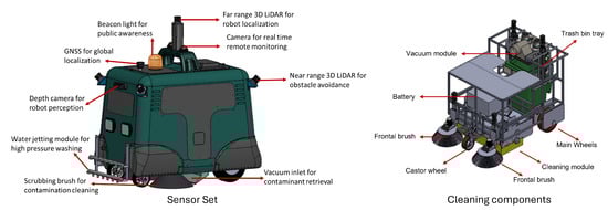 - Duan, H.; Liu, X.; Tian, C.; Hu, L. Experimental Research on Outdoor Sweeping Robot. In Proceedings of the International Conference on Cognitive based Information Processing and Applications, Changzhou, China, 22–23 September 2022; Springer: Berlin/Heidelberg, Germany, 2022; pp. 495–504. [Google Scholar]
