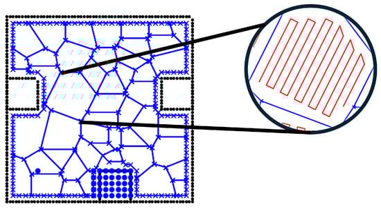 Figure 7 presents a visual example of a coverage path within a subregion obtained through Voronoi decomposition. The blue boundary denotes the Voronoi-defined region to be cleaned, while the red lines illustrate the generated coverage path that the robot follows to complete the task.