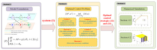 The remainder of the paper is organized as follows. Section 2 introduces the hybrid bi-level controlled model and necessary preliminaries. Section 3 develops the spatiotemporal optimal-control formulation and derives its optimality conditions. Section 4 presents two comparative simulation studies that confirm the adaptability and efficacy of the proposed control strategy. The structure of the paper is illustrated in Figure 1.