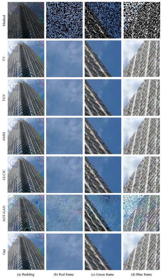 - Xu, Z.; Sun, J. Image Inpainting by Patch Propagation Using Patch Sparsity. IEEE Trans. Image Process. 2010, 19, 1153–1165. [Google Scholar]
