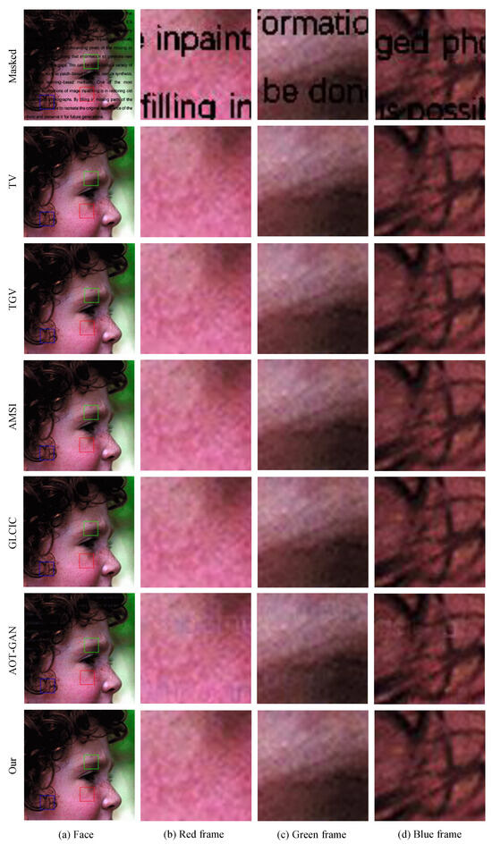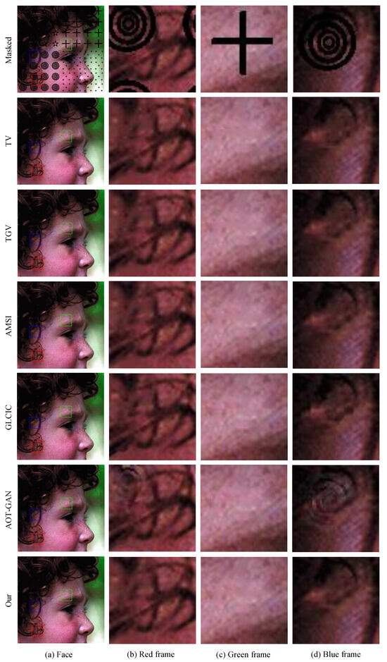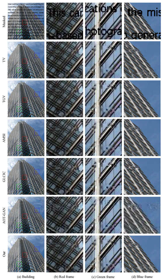 - Criminisi, A.; Pérez, P.; Toyama, K. Region Filling and Object Removal by Exemplar-based Image Inpainting. IEEE Trans. Image Process. 2004, 13, 1200–1212. [Google Scholar] [CrossRef]