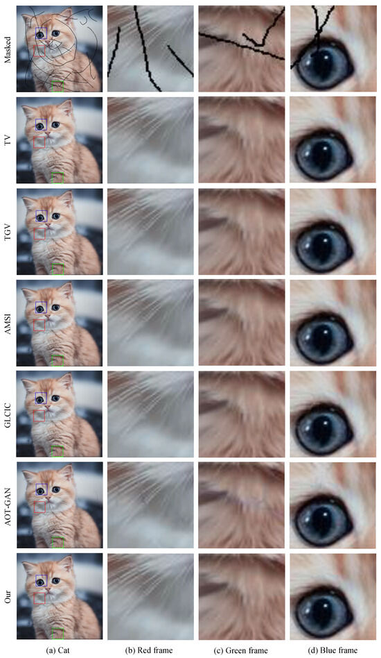 A variety of techniques have been proposed to solve the image inpainting problem. Among the most widely used are diffusion-based methods, which leverage the information from neighboring regions to propagate data into damaged areas. These methods typically use partial differential equation (PDE)-based and variational-based frameworks for image restoration. Bertalmio et al. [1] introduced the first PDE-based inpainting model, which was simple but prone to producing blurred results due to the smoothness of differential operators. Subsequent work [2,3] sought to refine this approach by improving the handling of image features, but the issue of blur remained.