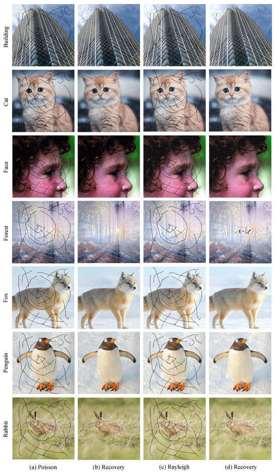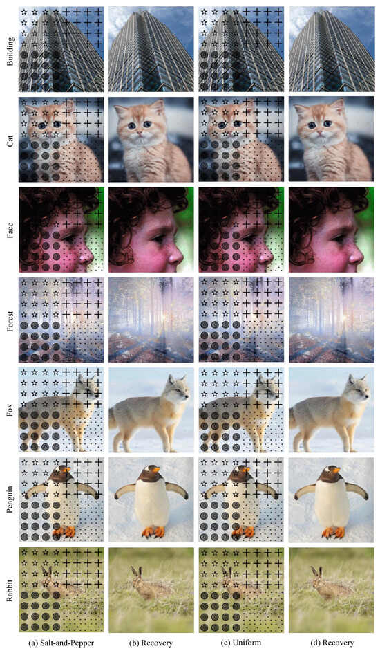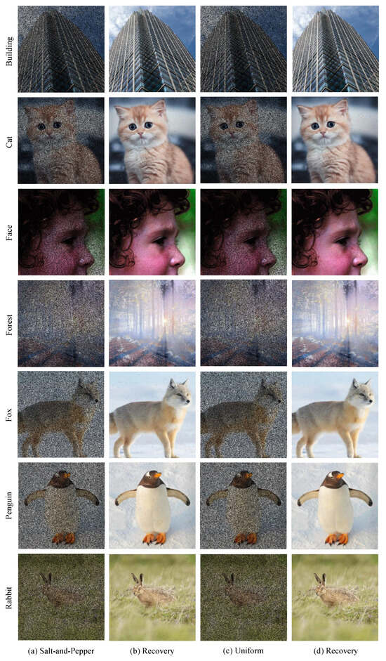 In recent years, fractional-order PDEs have gained attention for image processing, offering better control over the smoothness and sharpness of restored images. Fractional differential operators replace standard differential operators with their fractional counterparts, leading to models that mitigate the oversmoothing effect commonly observed in traditional PDE-based methods [9,10]. These fractional models have shown promising results in both theoretical studies and practical applications [11,12,13,14,15,16,17,18,19,20,21,22,23,24,25,26,27,28].