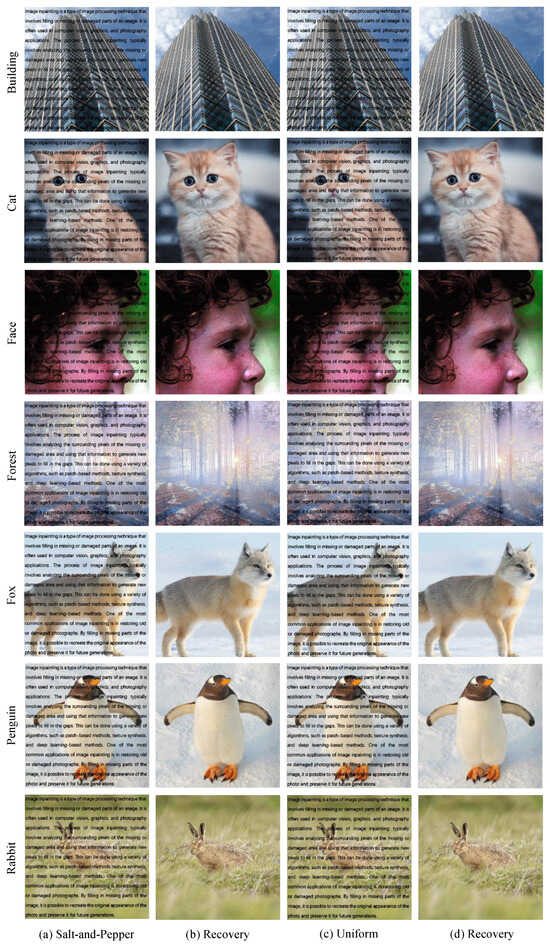 In more recent years, deep learning-based inpainting techniques have achieved impressive results by leveraging generative models, such as Variational Autoencoders (VAEs) [33,34] and Generative Adversarial Networks (GANs) [35,36], to learn both high- and low-frequency features of the image. These models generate plausible content for missing regions by learning the underlying structure and texture of the image. Several architectures have been proposed to address different types of inpainting challenges, such as irregular hole filling [37], high-resolution restoration [38], and multiple-solution generation [39].
