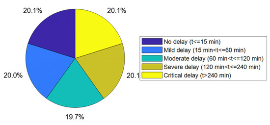 Proportion of flights with different delay levels after imbalance treatment.
