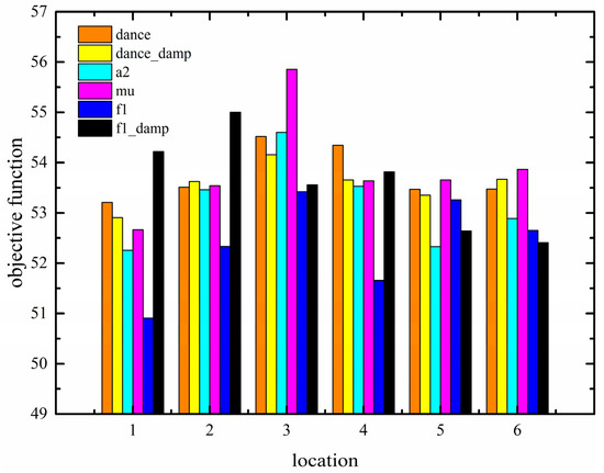 To validate the established storage location allocation model and the designed IMA algorithm, 18 vacant storage location coordinates are selected for the simulation. For the MA, the parameter ranges are as follows: the population size ranges from 20 to 50, the number of iterations ranges from 200 to 1000, the wedding dance coefficient ranges from 0.1 to 0.3, the wedding dance decay parameter ranges from 0.8 to 0.99, the population learning coefficient ranges from 1.5 to 2.0, the individual learning coefficient is set to 1, the visibility coefficient is 2, the mutation rate ranges from 0.01 to 0.1, the random flight coefficient ranges from 0.1 to 0.3, and the random flight decay parameter ranges from 0.8 to 0.99. Initial parameters are selected based on these ranges, and through continuous adjustment of various parameters, the results of inbound storage location allocation are optimized. For the GA, the parameter ranges are as follows: the population size ranges from 20 to 50, the number of iterations ranges from 200 to 1000, the crossover probability ranges from 0.4 to 0.9, and the mutation probability ranges from 0.01 to 0.1. The parameter tuning process for the genetic algorithm is similar to that of the MA. For the PSO, the parameter ranges are as follows: the population size ranges from 20 to 50, the number of iterations ranges from 200 to 1000, the inertia weight ranges from 0.4 to 0.9, the cognitive learning factor (c1) ranges from 1.3 to 2, and the social learning factor (c2) ranges from 1.3 to 2. The parameter tuning process for the PSO algorithm is similar to that of the MA. For the mayfly algorithm and IMA algorithm, the parameters are shown in Table 3. In the genetic algorithm, the population size is set to 200, the crossover rate is set to 0.85, and the mutation rate is set to 0.02; in the particle swarm optimization algorithm, the number of particles is set to 50, ω (inertia weight) is set to 0.6, and c1 = c2 = 1.4 (acceleration coefficients). It should be noted that the initial parameter values for these algorithms were determined based on a comprehensive review of the relevant literature as well as preliminary experimental results. All experiments are conducted on a hardware platform equipped with an Intel (Santa Clara, CA, USA) i5-7300HQ processor, a GTX1050-8G graphics card, and 12 GB RAM. The software testing environment is MATLAB R2020a. Figure 6 illustrates the impact of various parameters of the IMA on the experimental results. Figure 7 shows a comparison of the fitness value curves with the number of iterations. Table 4 presents the values of the parameters for different algorithms. Table 5 presents the results of the IMA algorithm for the allocation of vacant storage locations to inbound order goods.