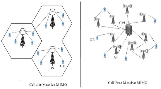 - Björnson, E.; Sanguinetti, L. Cell-Free versus Cellular Massive MIMO: What Processing is Needed for Cell-Free to Win? In Proceedings of the 2019 IEEE 20th International Workshop on Signal Processing Advances in Wireless Communications (SPAWC), Cannes, France, 2–5 July 2019; pp. 1–5. [Google Scholar] [CrossRef]