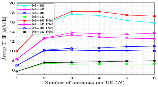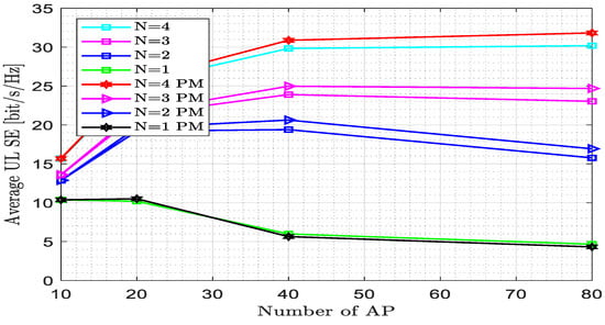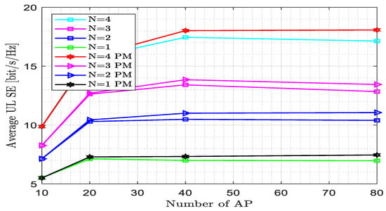 4.1. Impact of the Number of Users and the Pilot Reuse Factor per Access Point on Spectral Efficiency