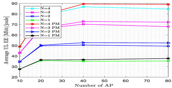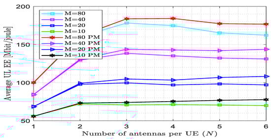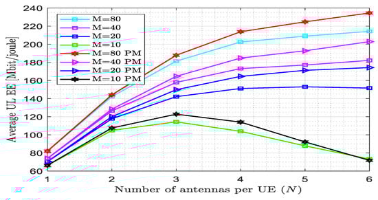 4.2. Impact of the Number of Users and the Pilot Reuse Factor on Energy Efficiency
