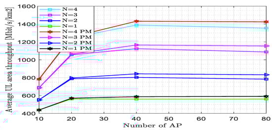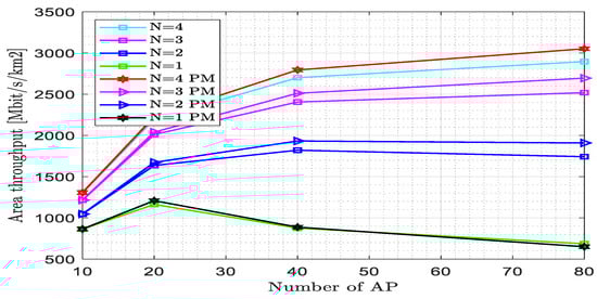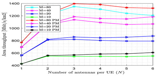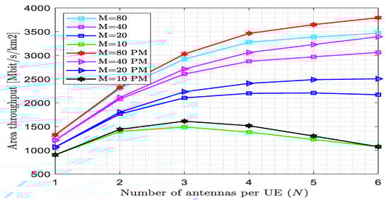 4.3. Impact of the Number of Users and the Pilot Reuse Factor on Area Throughput