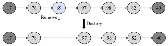 The core idea of an ALNS algorithm is to destroy the solution, repair the solution, dynamically adjust the weights, and select. By designing multiple sets of destroy and repair operators, the solution space search range is expanded, and the current solution is improved. In each iteration, based on previous performance, the selection and weighting adjustment of various destruction and repair operators are conducted, using efficient combination methods to enhance the algorithm’s optimization capability, thereby finding the optimal solution. The process is as follows.