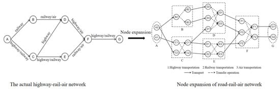 In addition, selecting appropriate transportation modes is critical for ensuring the rapid delivery of massive relief supplies [3,16]. Under emergency conditions, decision-makers face a dual challenge: adhering to rescue time constraints while minimizing transportation costs [17]. However, in practice, the transportation of massive relief supplies faces the following challenges due to weather and traffic constraints: (1) long transportation distances and the low economic efficiency of a single transportation mode [18]; (2) the transportation chain is lengthy, involving multiple transfer stages, with low transfer efficiency [11]; and (3) the volume of relief supplies allocation is large, while the transportation capacity resources are limited [19]. As an efficient mode of transport, intermodality has a large volume and relatively low transportation cost [20]. Therefore, leveraging the advantages of various transportation modes and formulating scientifically sound intermodality strategies become an effective means to improve quality of rescue services and reduce casualties and property losses.