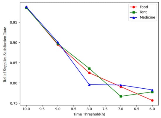 In the post-disaster response phase, the timely and effective transportation of relief supplies to AAs is crucial for saving lives [15]. The deprivation cost associated with the shortage of relief supplies increases exponentially over time [12,14]. Therefore, selecting the appropriate mode of transportation to enhance the transportation efficiency can significantly alleviate the suffering of affected populations [41]. This is essential for accelerating emergency response efforts.