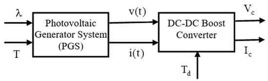 The PVGS has two inputs: as the solar irradiation and as the cell temperature. Then, the complete series system, which includes the PVGS and the DC-DC IBC, is illustrated in Figure 1 [4,27].