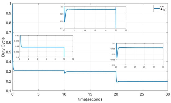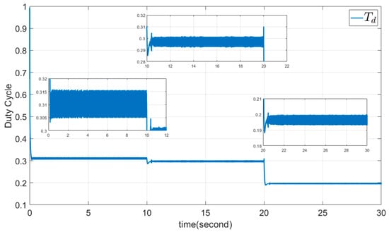 In which, and are input capacitor and self-inductor, respectively, is the output capacitor, and is the semiconductor switch. The dynamic of is ignored because it is supposed the output voltage and output current are constant. In addition, duty cycle is defined in Figure 1.