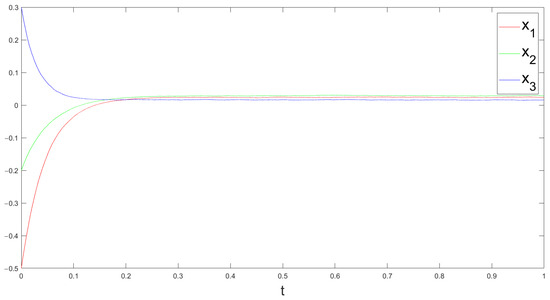 In conclusion, given the parameters under consideration, the conditions of Theorem 4 are satisfied, which guarantees both mean-square exponential stability and almost sure exponential stability for the solution to Equation (3). The numerical solutions illustrated in Figure 2 provide a visual confirmation of the solution’s stability. They reveal that the solution rapidly converges to the equilibrium state, indicating a swift stabilization of the system.