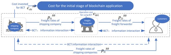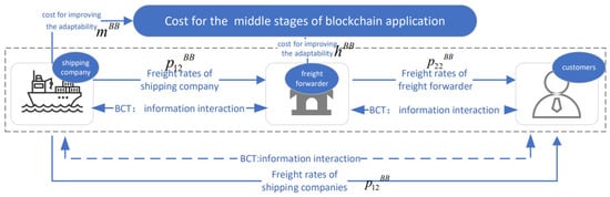 - In the traditional shipping logistics service supply chain, the information asymmetry between the two chains leads to freight forwarder and shipping company not knowing each other’s actual strategies and the low information exchange efficiency of each supply chain link. After joining the blockchain alliance, the nodes between the supply chains record information in the blockchain to ensure the authenticity and validity of the information and improve the efficiency of information interaction [62,63].