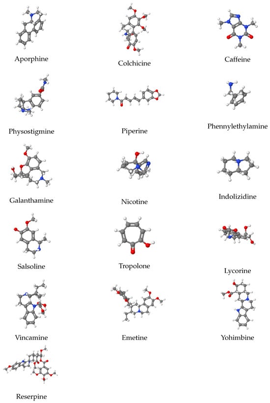 Alkaloids are a broad class of organic compounds with nitrogen atoms in their structures that are found in nature. They are crystalline liquids that are colorless, odorless, and tinted yellow. They typically taste bitter. Alkaloids have been utilized as remedies for hundreds of years and are mostly found in plants. They are widely used in the agriculture sector as insecticides and herbicides and they affect both humans and animals physiologically in a variety of ways. With the aid of various molecular descriptors, six features of the structures of all the alkaloids can be estimated. Although there are many different kinds of alkaloids in nature, only sixteen are investigated using regression models and topological indices. QSPR modeling is used to analyze these 16 alkaloids, as presented in Figure 2.
