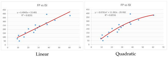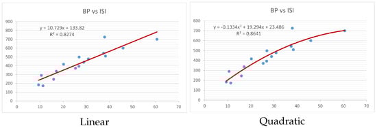 A simple linear regression is used to ascertain how two quantitative variables interact. It statistically characterizes the relationship between the independent or explanatory variable X and the dependent or response variable Y using a linear equation. Quadratic regression is a type of regression analysis used to model the relationship between a dependent variable Y and an independent variable X when the data follows a parabolic (U-shaped or inverted U-shaped) trend rather than a straight line. The regression equations used in calculations are as follows: