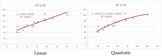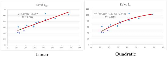 Linear vs. quadratic regression of enthalpy of vaporization (EV) with .