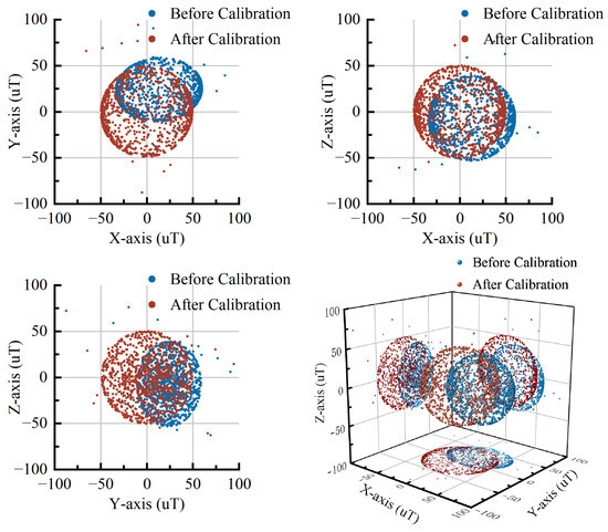 - Hu, F.; Wu, Y.; Yu, Y.; Nie, J.; Li, W.; Gao, Q. An improved method for the magnetometer calibration based on ellipsoid fitting. In Proceedings of the 2019 12th International Congress on Image and Signal Processing, BioMedical Engineering and Informatics (CISP-BMEI), Huaqiao, China, 19–21 October 2019; pp. 1–5. [Google Scholar]
