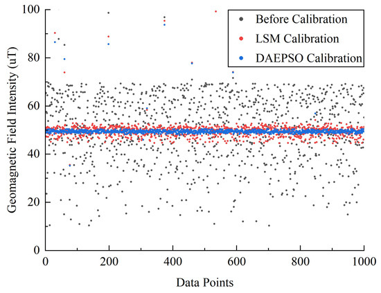 - Guan, J.; Chen, Z.; Jiang, G. Research on calibration method of triaxial magnetometer based on improved pso-ellipsoid fitting algorithm. Electronics 2025, 14, 1778. [Google Scholar] [CrossRef]