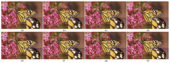 - Timofte, R.; Agustsson, E.; Van Gool, L.; Yang, M.H.; Zhang, L. Ntire 2017 challenge on single image super-resolution: Methods and results. In Proceedings of the IEEE Conference on Computer Vision and Pattern Recognition Workshops, Honolulu, HI, USA, 21–26 July 2017; pp. 114–125. [Google Scholar]
