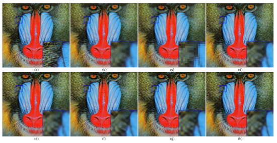 - Bevilacqua, M.; Roumy, A.; Guillemot, C.; Alberi-Morel, M.L. Low-complexity single-image super-resolution based on nonnegative neighbor embedding. In Proceedings of the British Machine Vision Conference 2012, Surrey, UK, 3–7 September 2012. [Google Scholar]