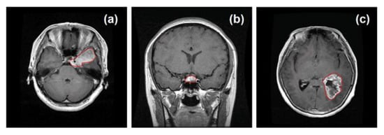Sample MRI scans: (a) meningioma, (b) pituitary, and (c) gliomas brain tumor [86].