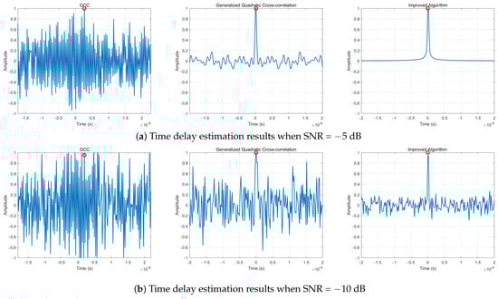 Time delay estimation results under −5 dB and −10 dB.