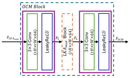 Based on this architectural design, the proposed implementation reduces the number of residual blocks and introduces a skip connection after the OCM module. This connection is implemented using a 1 × 1 convolution, which serves as a linear projection to adjust dimensionality, enabling direct information flow across layers and improving training stability while maintaining computational efficiency.