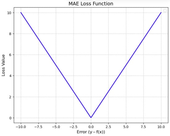 It should be noted that the contribution of the error follows a linear pattern, which means that small errors are as important as large ones, making the model less sensitive to outliers. MAE function curve is shown in Figure 2.