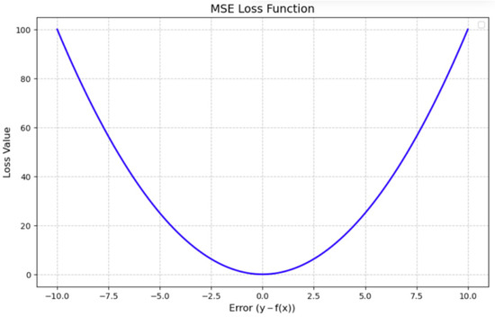 However, MSE may be overly sensitive to outliers. Large errors can significantly increase the loss value, causing the model to be prone to overfitting outliers. The function curve of MSE is shown in Figure 3.