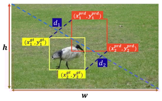 - Rezatofighi, H.; Tsoi, N.; Gwak, J.Y.; Sadeghian, A.; Reid, I.; Savarese, S. Generalized intersection over union: A metric and a loss for bounding box regression. In Proceedings of the IEEE/CVF Conference on Computer Vision and Pattern Recognition, Long Beach, CA, USA, 15–20 June 2019; pp. 658–666. [Google Scholar]