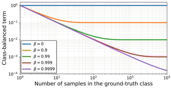 - Cui, Y.; Jia, M.; Lin, T.-Y.; Song, Y.; Belongie, S. Class-balanced loss based on effective number of samples. In Proceedings of the IEEE/CVF Conference on Computer Vision and Pattern Recognition, Long Beach, CA, USA, 15–20 June 2019; pp. 9268–9277. [Google Scholar]