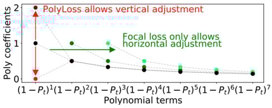 - Leng, Z.; Tan, M.; Liu, C.; Cubuk, E.D.; Shi, J.; Cheng, S.; Anguelov, D. PolyLoss: A Polynomial Expansion Perspective of Classification Loss Functions. In Proceedings of the International Conference on Learning Representations, Virtual, 25–29 April 2022. [Google Scholar]