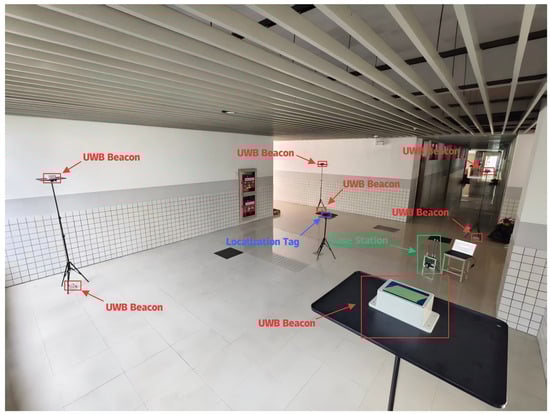 Currently, the commonly used indoor localization technologies are primarily based on the following: Bluetooth indoor localization [8], infrared indoor localization [9], ultrasonic indoor localization [10], WiFi indoor localization [11], radio-frequency identification (RFID) indoor localization [12], ZigBee indoor localization [13], and ultra-wideband (UWB) indoor localization [14,15], among others. Among these, UWB stands out as a technology with exceptional precision, robustness, and penetration capabilities [16]. Defined by the Federal Communications Commission as a radio-frequency signal occupying a frequency spectrum exceeding 20% of the center carrier frequency or a bandwidth greater than 500 MHz, UWB spreads information across a wide spectrum, enabling high data throughput with minimal energy consumption [17]. Its large bandwidth further provides unparalleled advantages over alternatives like Bluetooth, Zigbee, and RFID, including enhanced ranging accuracy, superior multipath resolution [18], and robustness to interference, making it a leading choice for precision-critical indoor applications.