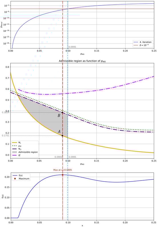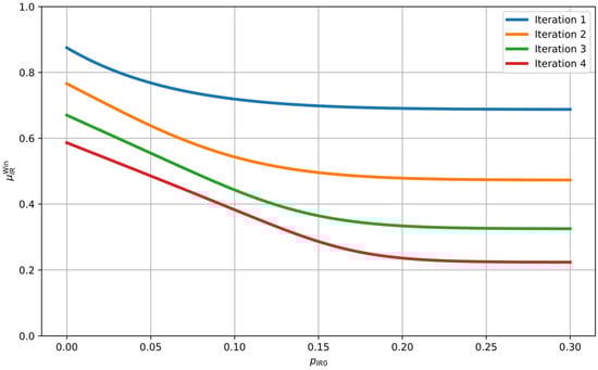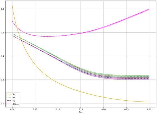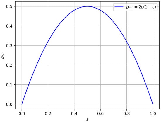 Dependence (6) of the initial BER between Alice’s and Bob’s sequences on the parameter of the local source of pure randomness whose probability distribution is .